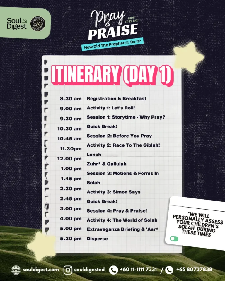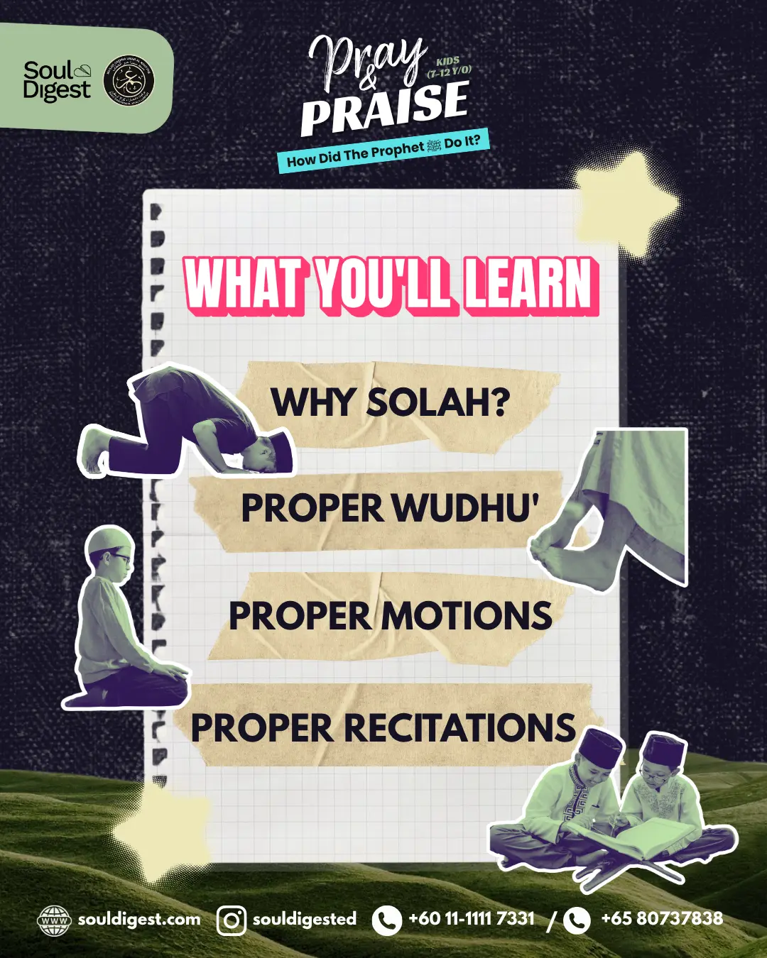 An interactive program focusing on achieving proper wudhu, motions, and recitations, through refreshing lessons, games and activities while offering the opportunity to make friends with other cool Muslim kids.